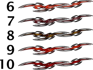 Want something more savage than basic stripes? Our Tribal Links side vinyl graphics look like sharpened blades flowing down the body line of your ride. Each “link” twists, overlaps and tapers to a point, giving your car, truck or semi that custom airbrushed look without a trip to the paint shop.