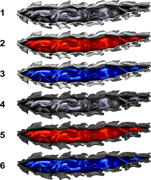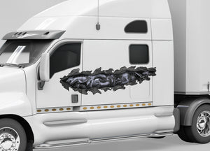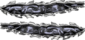If your ride could breathe fire, this is what it would look like. Our dragon tear decals rip across the side of your vehicle like the metal has been shredded open, revealing a row of fierce dragons coiled just under the sheet metal and ready to strike.