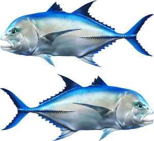 Bring oceanic excitement and brilliant color to your boat with our stunning Giant Trevally Blue-Silver Vinyl Decal. Captured in a lifelike side-view pose, this decal highlights the power and agility of the Giant Trevally (GT)—one of the ocean’s most iconic predators—in striking shades of vivid blue and gleaming silver.