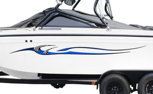 Give your boat a fast, clean look with our Legend Checkered Flag Stripes. The flowing spear tips and subtle checker accents bring a pure racing vibe that sits beautifully along most hull lines—from bow sweep to stern.