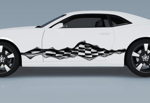 Built for speed lovers: our Checkered Flag Rip decals tear across the bodywork with a realistic ripped-metal illusion that reveals a flowing black-and-white race flag. The soft folds, shadowed edges, and high-contrast checkers read crisp from pit lane to highway.