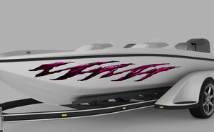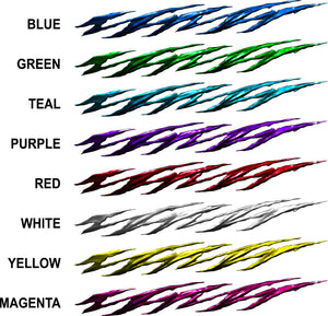 Cut a bold wake with our Jagged Side boat graphics—razor-edged streaks that track your hull lines and add instant speed and attitude. Printed on Orajet and protected with Oraguard laminate using our Roland printer, these decals stay vivid through sun and spray. Each set arrives pre-masked with application tape for clean, accurate placement.