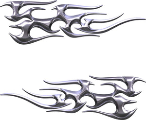 Ignite your ride with molten-metal attitude. Our Tribal Chrome Flames fuse classic flame shapes with aggressive tribal points, then finish them with a mirror-grade 3-D chrome effect that looks poured, polished, and ready to roar.