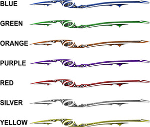 Want your ride to look like it just rolled out of the pits? Our Aurora Checkered Flag Stripe decals sweep down the body line with a sharp, modern profile and pockets of classic black-and-white checkers. The effect is pure race day – long, lean and ready to launch.