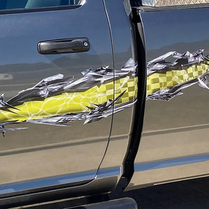 Give your ride that full-track attitude with these Ripper Checkered Lightning decals. A streak of electric color blasts through a chrome rip, fading into a bold checkered flag pattern that screams speed even when you are parked in the pits.