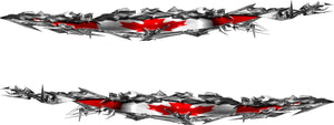 When you roll up with these Canadian Flag Ripper Tear decals, it looks like your ride is shredding open to reveal pure red-and-white pride underneath. Jagged chrome shards and a bold maple leaf stretch down the side of your car, truck, RV or semi trailer for a seriously aggressive, high-impact look.