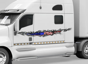 Let the stars and stripes look like they’re ripping right out of your sheet metal. This American Flag Ripper Tear decal set wraps your ride in a brutal chrome shred effect with a vivid waving flag underneath, perfect for patriotic builds, show trucks and long-haul rigs.