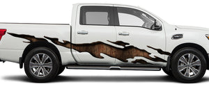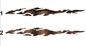 If you love the look of tough and rustic wood, you're going to love these Ripper Wood truck decals. The brown shades and dark shadowing of this wood grain pattern looks like realistic wood fiber, and it looks incredible ripping through the side of a pick-up! Because wood tones go well with anything, these vinyl graphics would look amazing on any make, model, or color vehicle. This set of two comes in many different sizes as well as two different styles so that you can create the unique look you want on your truck or car. So pick a style and a size, and we'll have that made and shipped out in just a few days.