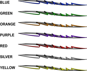 Set of 2 Pulse Checkered Flag Stripe decals – one left and one right, mirrored for both sides of your vehicle.